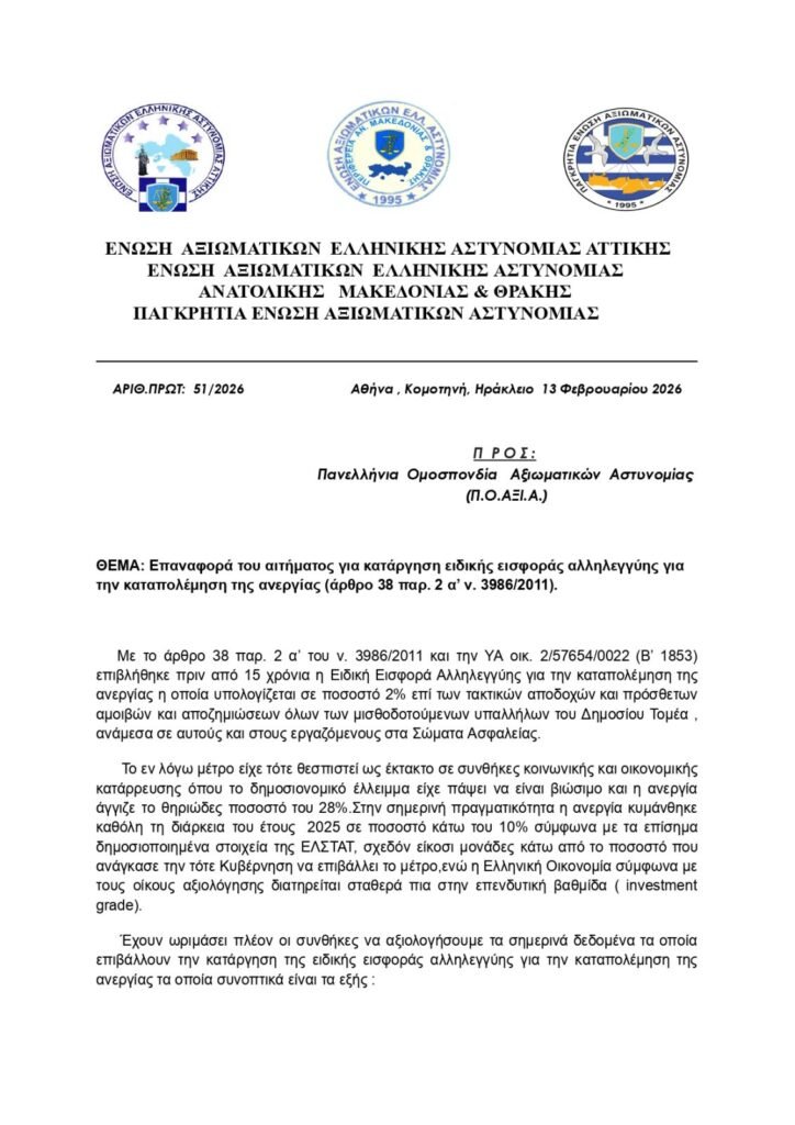Η Ένωση Αξιωματικών Ελληνικής Αστυνομίας Κεντρικής Μακεδονίας χαιρετίζει και προσυπογράφει πλήρως την κοινή πρωτοβουλία των Ενώσεων Αξιωματικών Αττικής, Ανατολικής Μακεδονίας & Θράκης και Κρήτης.
