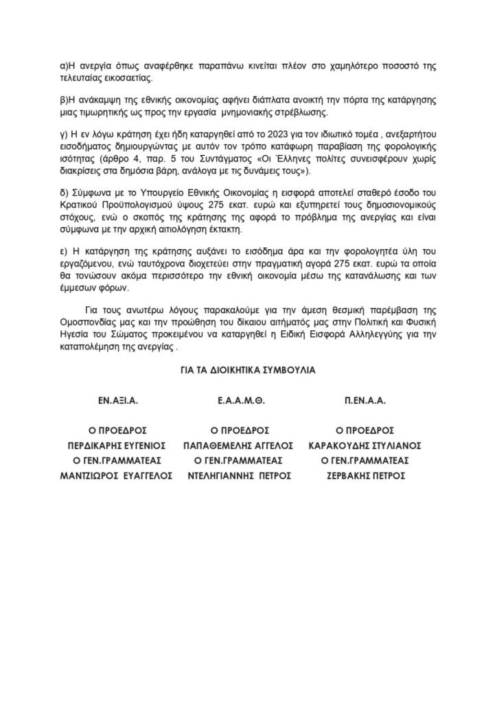 Αναλυτικά η κοινή ανακοίνωση των Ενώσεων: